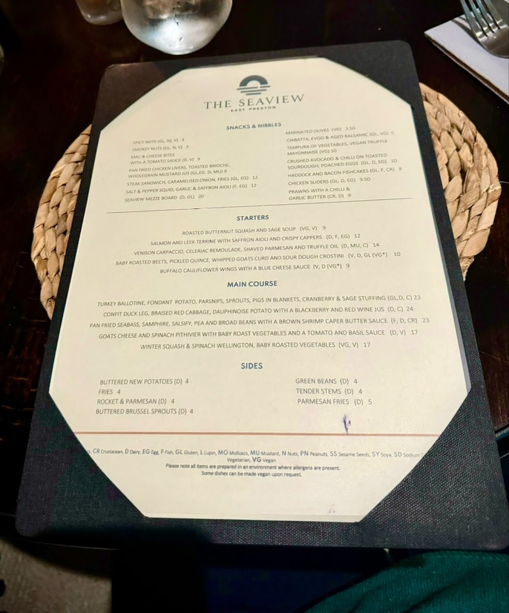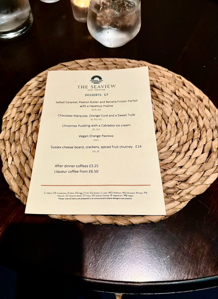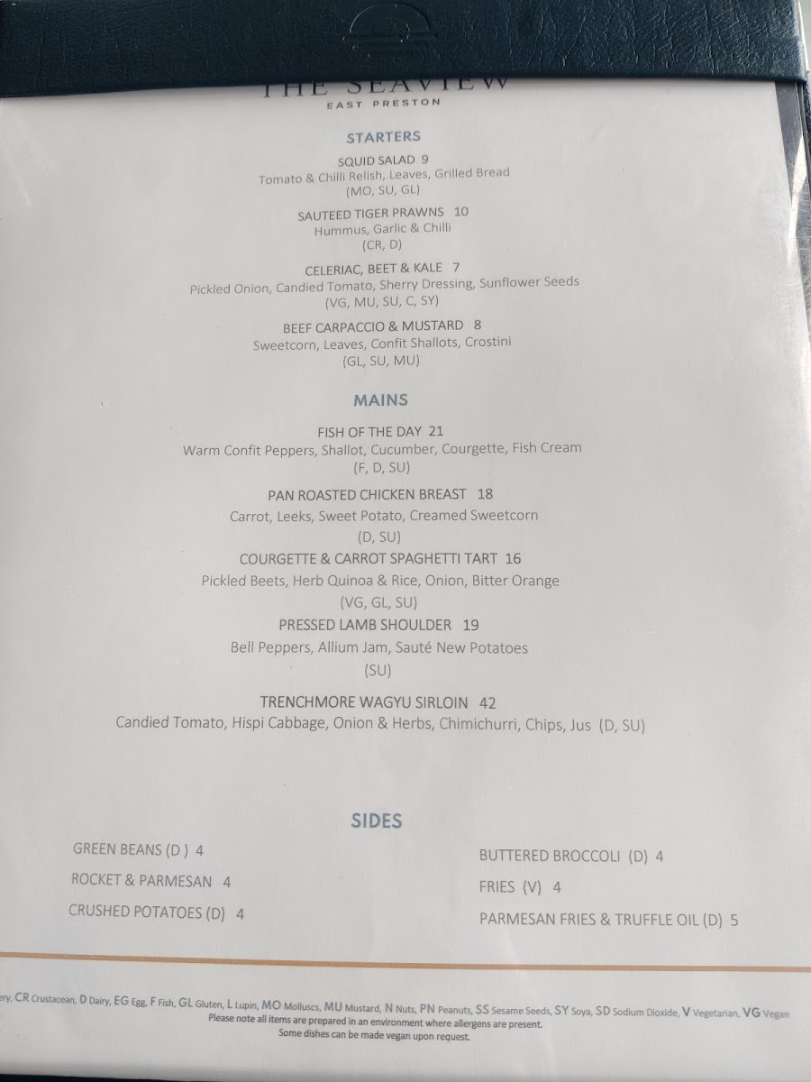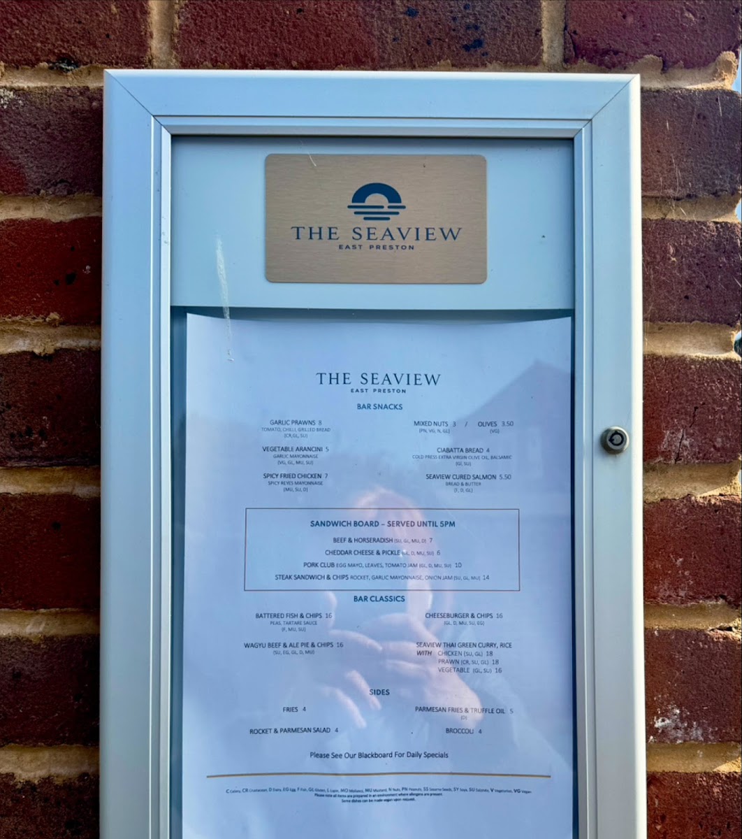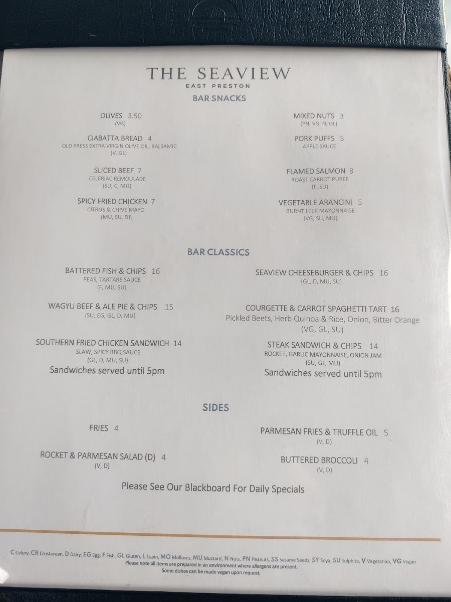 The Seaview East Preston Menu